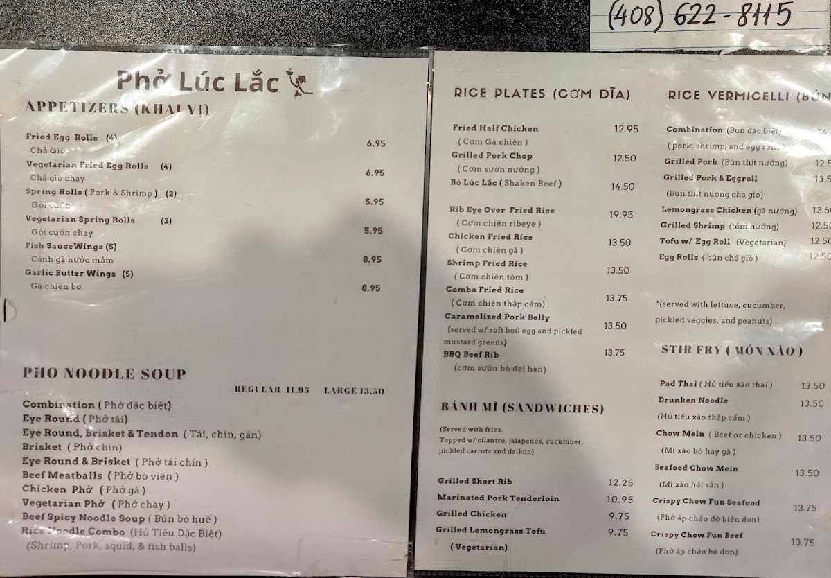 Welcome to Pho Luc Lac, a delightful Vietnamese eatery located at 1705 Branham Ln b3, San Jose, CA. This restaurant offers a diverse menu that showcases the essence of Vietnamese cuisine. Banh Mi options like the Marinated Pork Tenderloin and Grilled Chicken Sandwich are must-tries, beautifully combining savory flavors and fresh ingredients.