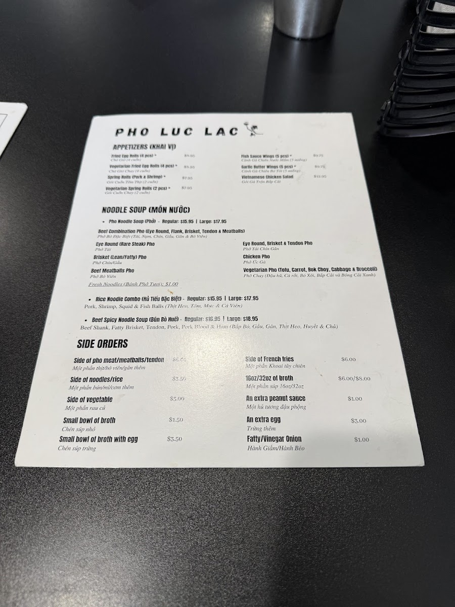 For a hearty stir-fry, the Drunken Noodles and Crispy Chow Fun offer unique twists. Every plate is generously portioned, promising satisfaction. Come experience Pho Luc Lac—your taste buds will thank you!