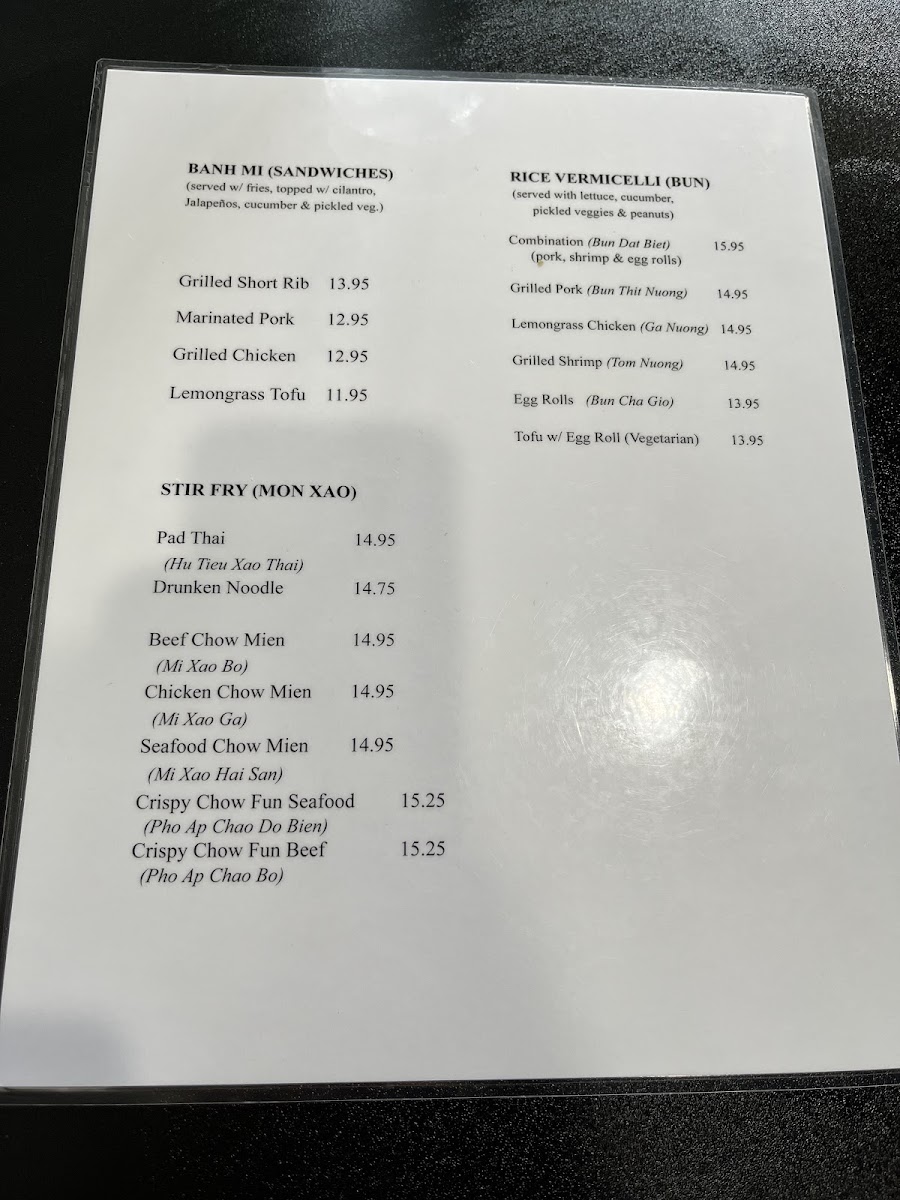 In addition to sandwiches, the menu features a variety of Aromatic Soups, with standout dishes like the beloved Bun Bo Hue—a spicy beef soup loaded with hearty ingredients, and the rich Pho Dac Biet combo, impressing diners with their clean, flavorful broths.